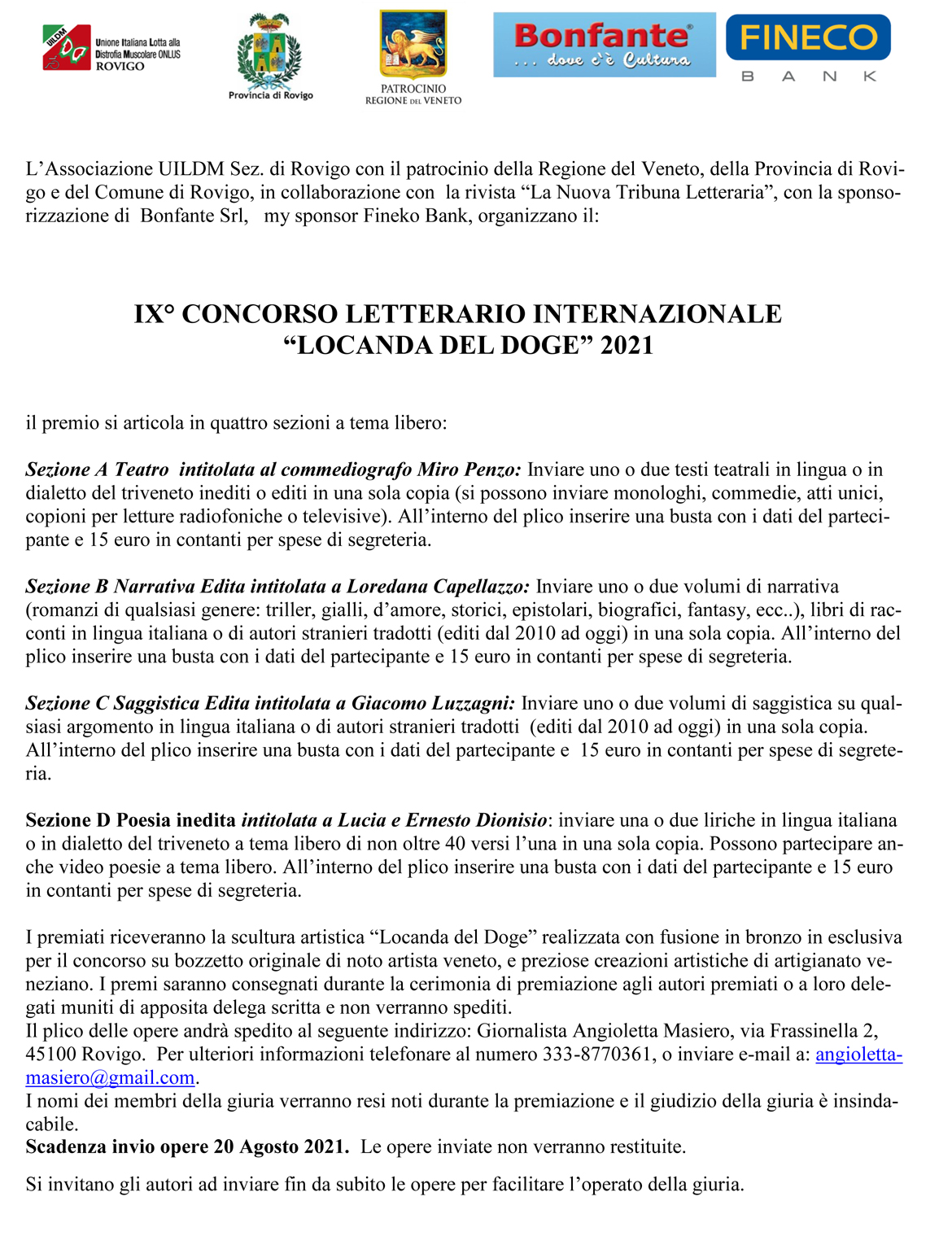Concorso Letterario Internazionale "LOCANDA DEL DOGE" 2021